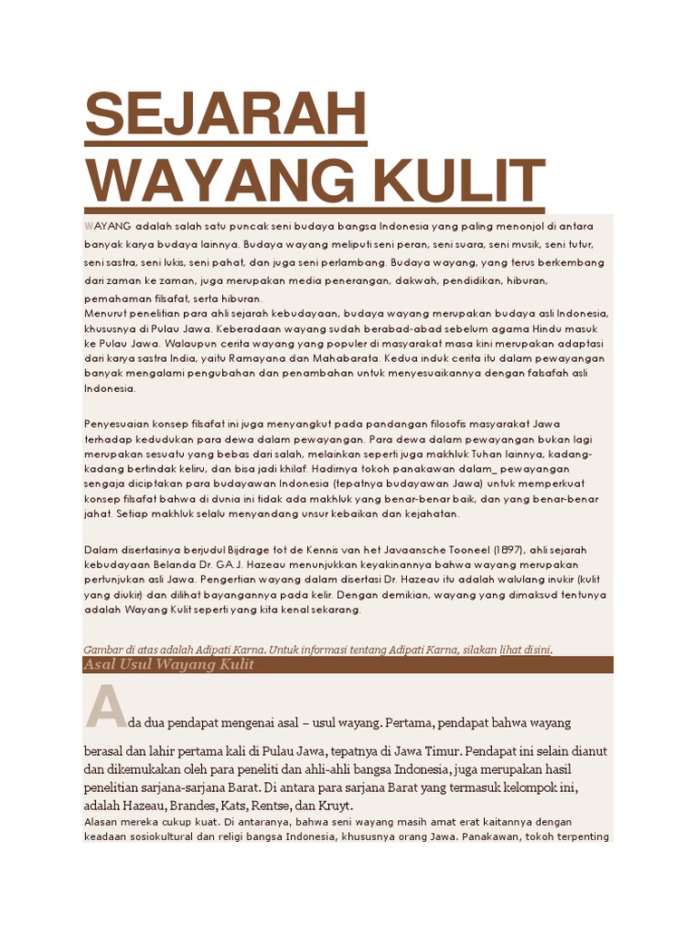 Asal Usul Wayang Kulit / Sementara itu asal usul keberadaan wayang kulit ini belum ditemukan bukti yang kongkrit.