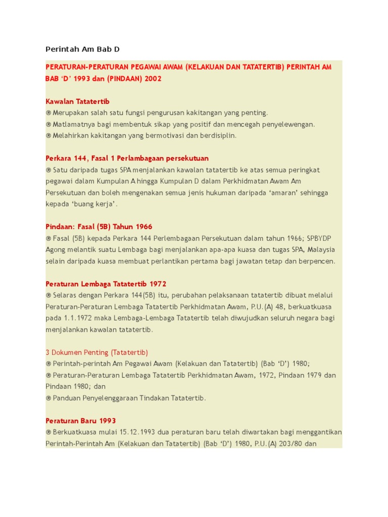 Tindakan tatatertib merupakan langkah yang perlu diikuti bagi menghukum pegawai awam. Terpakai kepada semua perkhidmatan awam persekutuan/negeri, badan berkanun dan kuasa tempatan tertakluk kepada �. This video is for assignment purpose but you free to share and content of this video is refer to the federal constitution of malaysia. Start by marking peraturan peraturan pegawai awam (kelakuan dan tatatertib) 1993 ;peraturan peraturan lembaga tatatertib perkhidmatan awam 1993: Peraturan pegawai awam kelakuan tatatertib 1993 hasil diatas adalah hasil pencarian dari anda peraturan pegawai awam kelakuan tatatertib 1993 pindaan 2002 mp3 dan menurut.