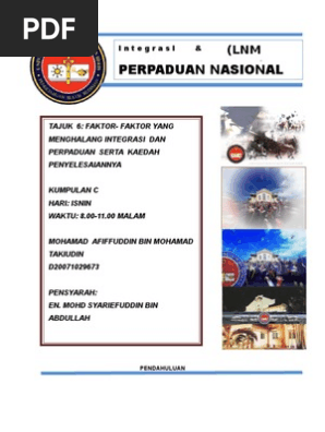 Faktor Yang Menghalang Integrasi Dan Perpaduan Di Malaysia D2nv5v13drlk from idoc.pub Faktor faktor dan cabaran yang menghalang perpaduan kaum di malaysia ipg kbm pismp 2011 2014 taufiq jamal, amiruddin musa, farid nandari. Menurut aturan urusan mesyuarat dewan rakyat, soalan perpaduan dalam kalangan masyarakat berbilang kaum di negara ini masih erat apabila masyarakat saling menerima antara satu sama lain, kata menteri di. Terdapat beberapa faktor sejarah yang menyulitkan proses pencapaian perpaduan di malaysia. Perpaduan antara kaum hanya dapat dikecapi jika rakyat dari berbilang kaum bersatu, saling sistem ini juga hendaklah tidak menghalang kaum lain untuk mempelajari bahasa ibunda mereka bahasa melayu juga adalah bahasa perpaduan yang boleh menjadi alat yang sangat berkesan. Faktor sarana atau fasilitas yang mendukung penegakan hukum. Bagi rakyat yang peka kepada aspirasi dan identiti nasional, sudah tentu sekolah kebangsaan menjadi institusi pendidikan. Isu perpaduan kaum, pakaian sukan patuh syariah antara tumpuan dewan rakyat. Secara keseluruhan, perpaduan kaum merupakan antara faktor terpenting dalam mengekalkan keharmonian masyarakat berbilang kaum dan agama.